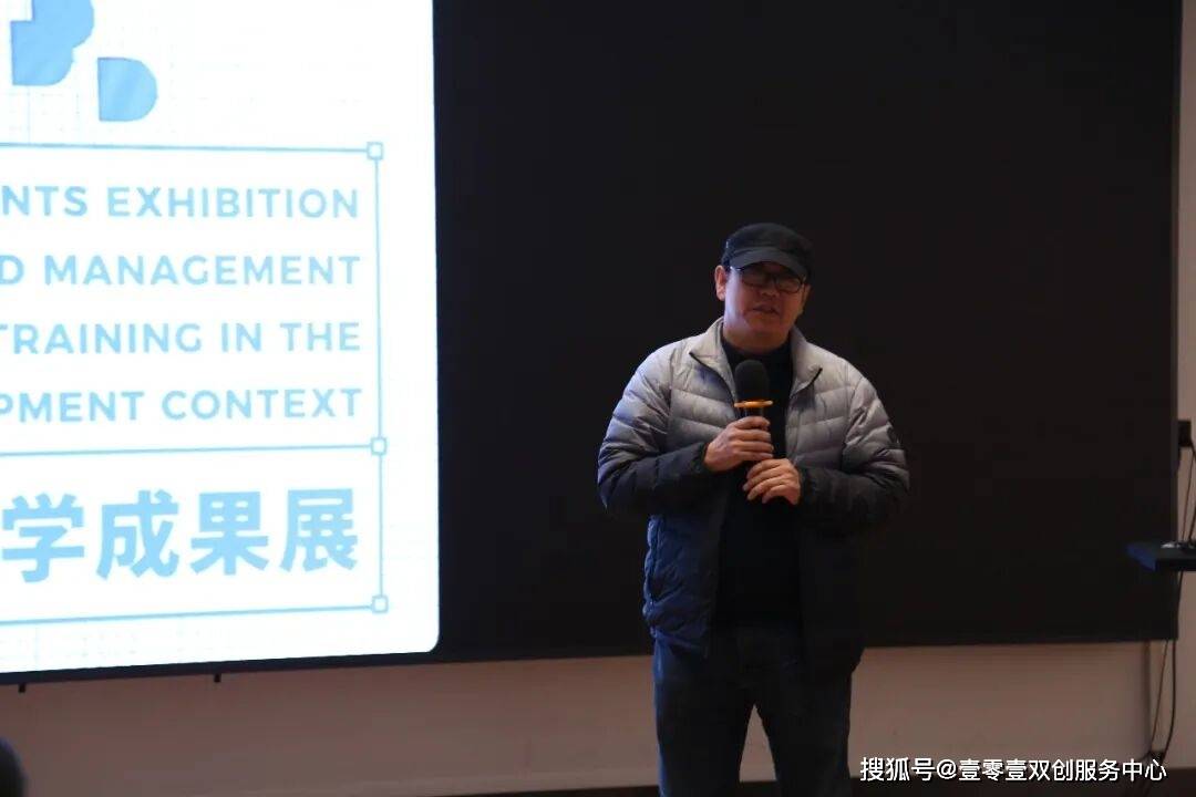 中央美术学院美术馆靳军教授出席开幕式并致辞。靳军教授肯定了项目采用多地点、多时段穿插进行的创新培养模式,让学员有充分消化吸收的时间。他指出,每位学员结合自身专业背景,形成了深入且落地的成果,体现了设计学科服务产业、科技与社会需求的特点。他认为该项目模式创新、成果扎实,为设计人才培养提供了有益探索,最后祝贺项目团队取得丰硕成果。